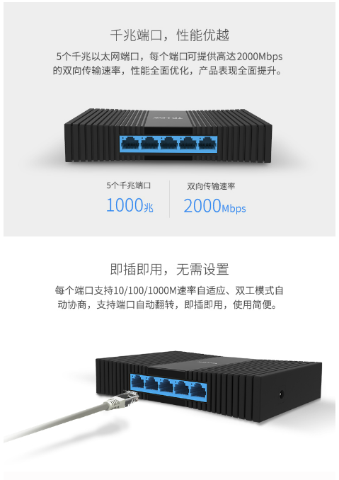TP-LINK 5口千兆交換機(jī) 4口企業(yè)級(jí)交換器 監(jiān)控網(wǎng)絡(luò)網(wǎng)線分線器 分流器 兼容百兆 TL-SG1005M