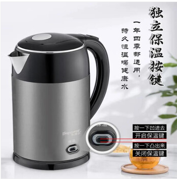 安博爾 電熱水壺燒水壺2L大容量家用一鍵保溫 304不銹鋼 雙層防燙 HB-3250G(2L)保溫款