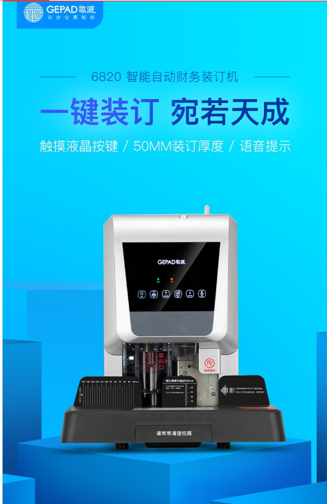 參數(shù) [商品名稱] 歌派(GEPAD)6820 [裝訂厚度] 31-50mm [類型] 財(cái)務(wù)裝訂機(jī) [尺寸] 40*60cm [裝訂方式] 自動