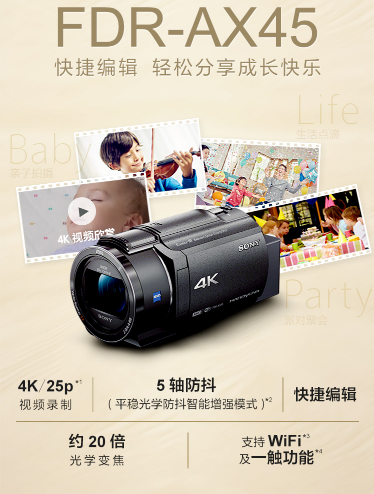 參數(shù) [品牌] 索尼 [型號(hào)] FDR-AX45A [毛重] .0kg [產(chǎn)地] 中國(guó)大陸 [類(lèi)型] 輕巧便攜 [單位] 套