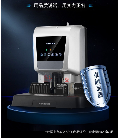 參數(shù) [商品名稱] 歌派(GEPAD)6820 [裝訂厚度] 31-50mm [類型] 財(cái)務(wù)裝訂機(jī) [尺寸] 40*60cm [裝訂方式] 自動